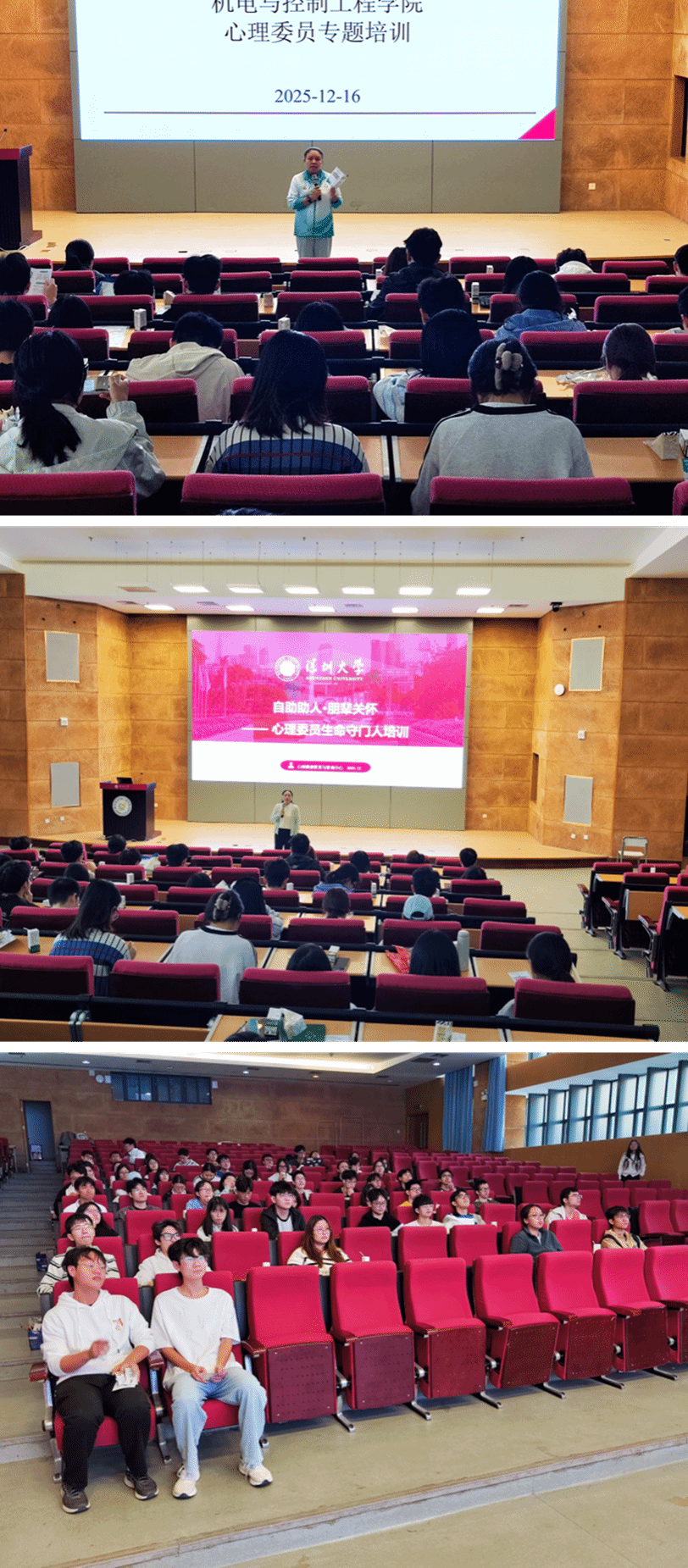 为加强学院心理委员队伍建设,提升心理委员的识别与干预能力,发挥朋辈互助在心理健康工作中的独特优势,学院于12月16日在学院报告厅举办“生命守门人”心理委员专题培训。培训邀请了心理健康教育中心蒋冬红老师主讲,学院党委副书记邓琳、辅导员卓永就、各年级心理委员以及学院心协成员参加此次活动。